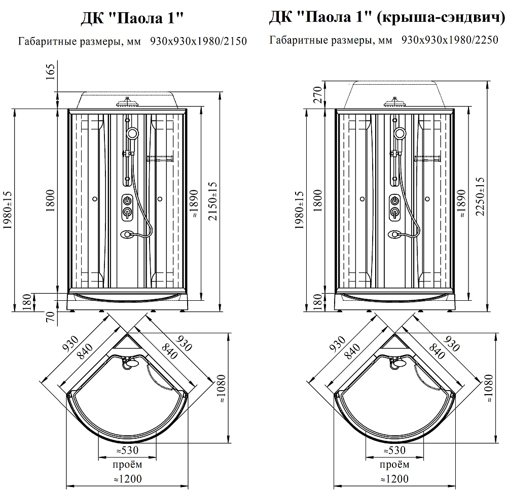 Душевая кабина "Паола" обладает просторным внутренним пространством и подходит для большинства ванных комнат современных квартир.