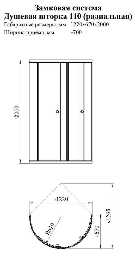 Душевое ограждение Стронг профиль черный стекла прозрачные без спины