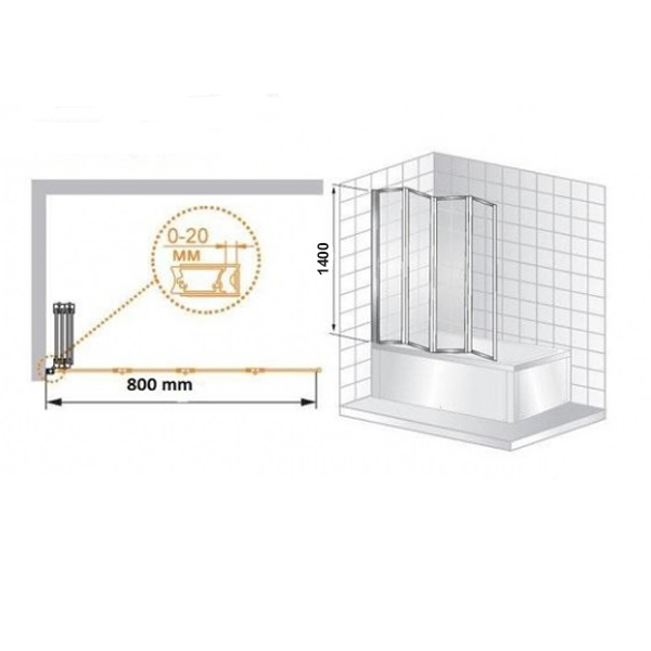 Прочность конструкции обеспечена качественной фурнитурой. Благодаря надежному механизму шторка-гармошка складывается плавно и легко, что гарантирует длительную эксплуатацию без повреждений и поломок. Хромированный профиль смотрится эстетично и хорошо сочетается с другими предметами сантехники, мебели и интерьера.